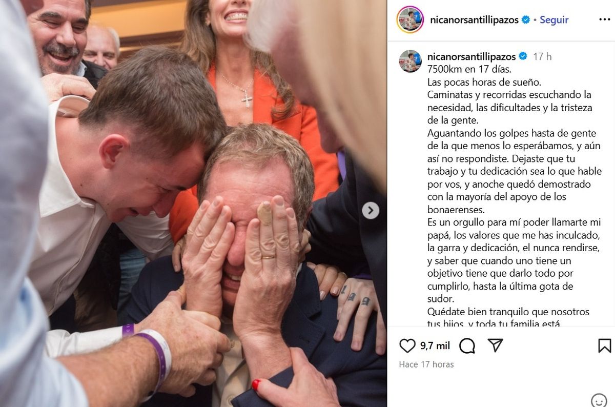 «7500 KM en 17 días. Las pocas horas de sueño. Caminatas y recorridas escuchando la necesidad, las dificultades y la tristeza de la gente», comenzó Nicanor, destacando el esfuerzo que su padre desplegó durante la campaña electoral.